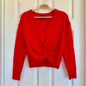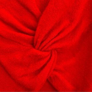 ❤️ Bright Red Knot-Front Long Sleeves V-Neck Brushed Knit Sweater