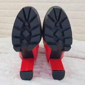 Bright Red Patent Lug Sole Studded Strap Ankle Boots Temptress