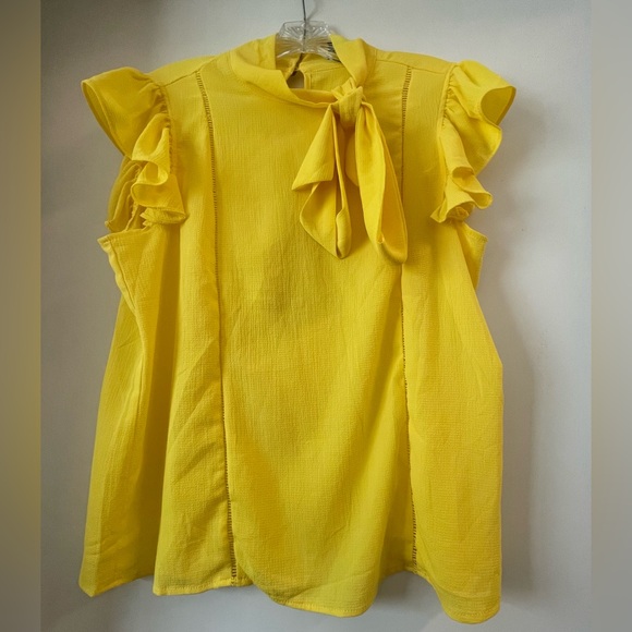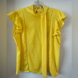Bright ruffled blouse with bow accent and two button keyhole back. Like-new, great condition!