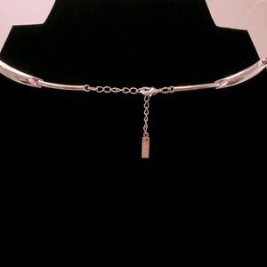 Bright Silver Tone Vintage Napier Curved Bar and Link Necklace with Extension