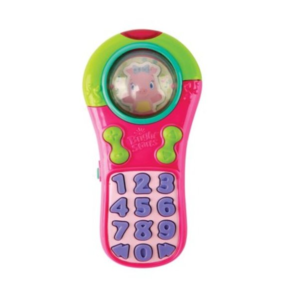 Bright Starts Pretty in Pink Click and Giggle Remote From the Manufacturer: Now baby can play with this cute remote control, just like mom and dad. This remote features over 25 nursery rhyme melodies, numbers, and fun television sounds. The remote also lights up as the buttons are pressed to keep baby engaged.