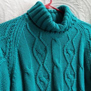 Bright Teal Chunky Cable Knit Thick Turtleneck Sweater By Junction West Size LG