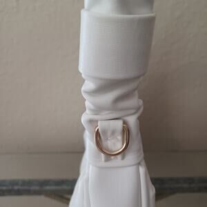 Bright White Ruched Mini white shoulder bag, featuring a distinctive ruched handle. Snap closure. Size 9 x 6.5 x 3. Not branded. Faux leather. Super soft. Perfect little bag for a lot of occasions. Includes a detachable strap.