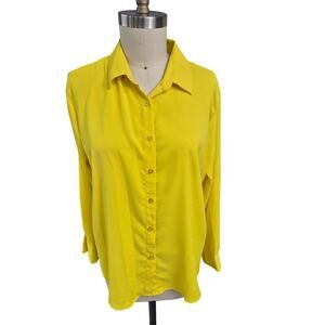 Textured polyester chiffon, lightweight & butter-soft. Pleated back, curved hem, button collar (v-neck option). Adjustable cuffs. Dress up or down: blazer, pants/skirt, or jeans/leggings. Work, office, travel, casual - wash separately, hang dry. Wore 1 time.