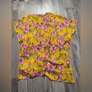 Add a pop of color to your wardrobe with this stunning bright yellow floral kimono cover-up!