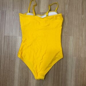 Bright Yellow Ruched One-Piece Swimsuit – Size 8