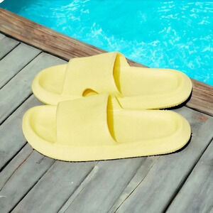 Yellow slides, open toe slides, comfy slides, vacation slides, beach sandals, home slippers, lounging slides, poolside footwear, bright yellow shoes, size 9 slides, ultra-comfy sandals, summer footwear, casual slides, trendy yellow slides, slip-on sandals, cushioned footbed sandals, comfortable slides for women, bright color sandals, women’s yellow slides, travel slides, lightweight shoes, breathable sandals, poolside slides, vacation essentials, summer essentials, non-slip slides, waterproof slides, stylish lounging shoes, yellow summer slides, women’s casual footwear, spring slides, summer slides, lounging slides, trendy yellow slides