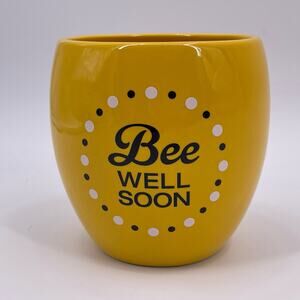 Bright Yellow Vase Porcelain BEE WELL SOON Planter 5" Desk Decoration Sick Gift