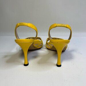 yellow patent leather slingback highheel strappy opentoe designer glossy statement elegant feminine