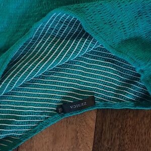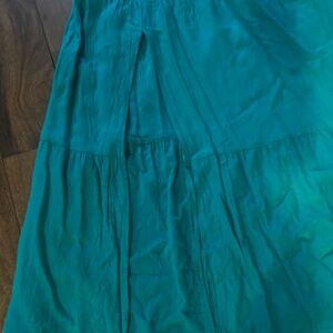 Bright and fun teal summer dress from Amazon. Off the shoulder (on the left side), embroidered at the top, with a tasteful slit near the waist. Stylish and comfortable. Worn only once!