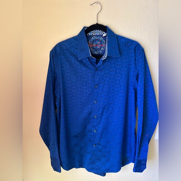 Beautiful baby blue button down with paisley design by Robert Graham. Gently used, quality and vibrant fabric 👏🏻🌹💯✨ size Medium
