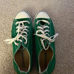 Green Converse low tops. Size 7 men/9 women. Good condition.