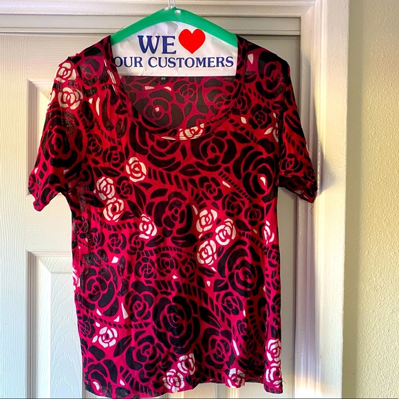 See thru mesh - wear a camisole under it. Great condition, beautiful colors