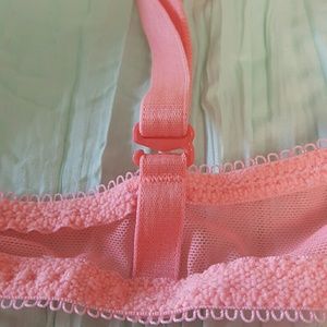 Super cute lace pattern and bow on front. The straps can be worn normal or crisscrossed. It has been worn but is in great condition. The tag is cut off but it's a 34B.
