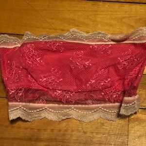 This pink and tan bra-let has a lined front and it fits a little small. Size up.