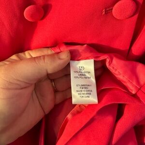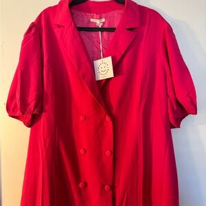 Elegant red dress with a collared neckline. Perfect for any occasion.