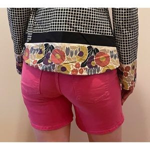 Bright pink Pilcro & the Letterpress stretch jean shorts