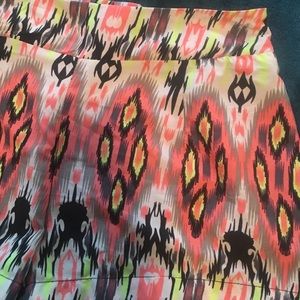 Polyester high waisted shorts with elastic band in size medium. Fun bright colors!