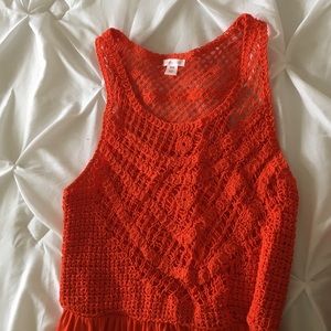 Really cute dress. Great condition and the color is beautiful. It's a bright red/orange color.