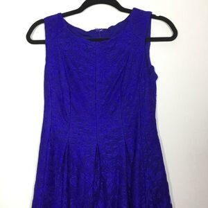 Bright royal blue lace dress with lining sleeveless midi special occasion 4P