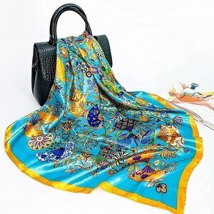 Scarf that is soft, smooth, and of high breathable. Made of 100% polyester satin silk, this scarf is soft, smooth and shiny. Versatile scarf that can be used as a head wrap, shawl, neck or waist tie.