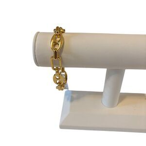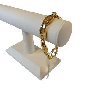 Bright Gold Toned Chain Link Bracelet. Very Sharp Looking.