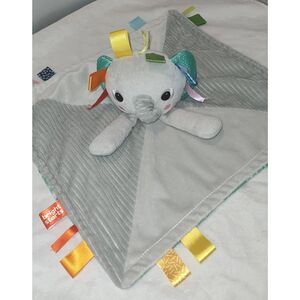 Bright Starts Gray Elephant Security Baby Blanket Lovey Green 13.5" x 13.5"