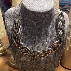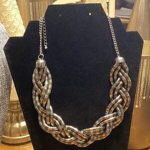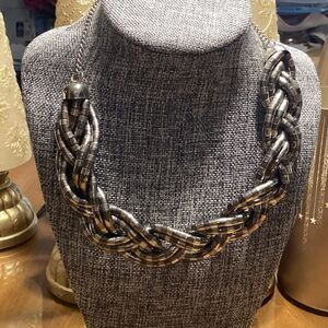 Bright and Matte Finish Silvertone Woven Choker Necklace