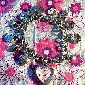 Brighton 2005 Power Of Pink Breast Cancer Awareness Heart Watch Charm Bracelet