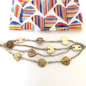 Brighton 3 Strand Retired Bracelet Hearts, Discs, Rectangles 7-8 inches Pouch