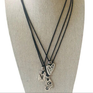 Brighton 3 strand leather necklace silver plated with 3 hearts. Silver plated