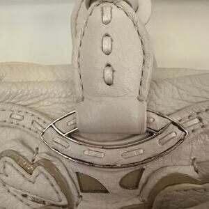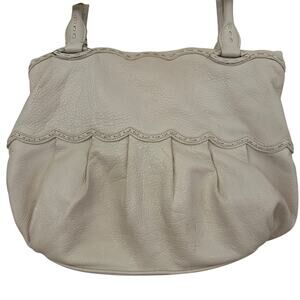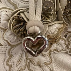 Brighton 3D Floral Appliqué Cream Soft Supple Leather Shoulder Handbag Purse