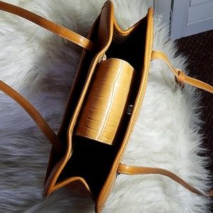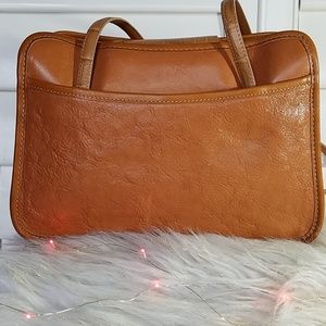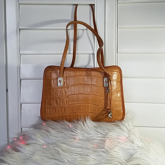 Beautiful all cognac leather with the usual brighton trademark hardware one blemish shown in pic#3 & 4 it's on the bottom and is hardly noticeable 11.5" long 7.5" tall 4" wide a really wonderful looking bag