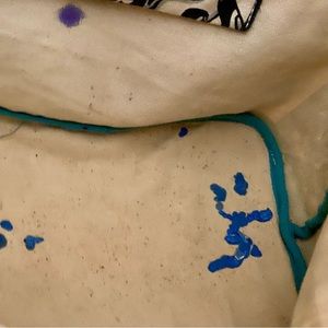 It has some blue paint in the bottom of the bag. See picture.