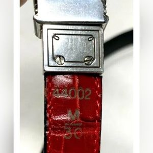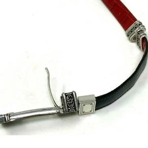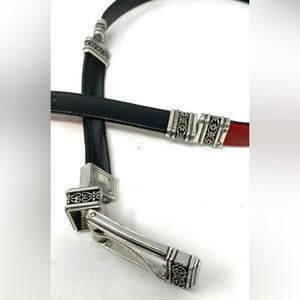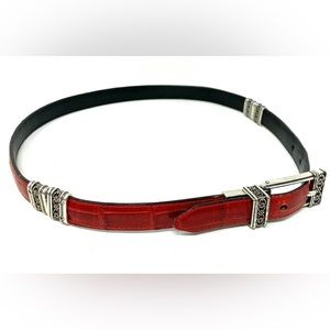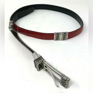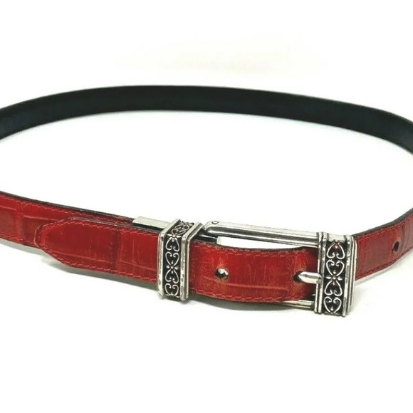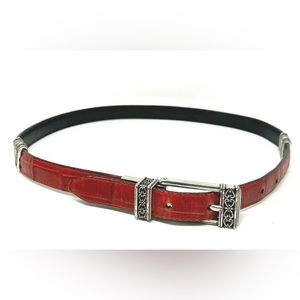 This is a versatile Brighton 2 way reversible quality leather skinny belt. May be worn on the red croc side or the smooth black side.