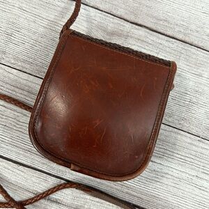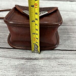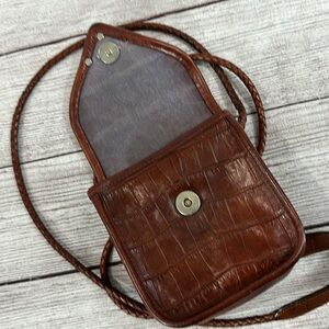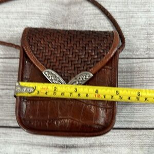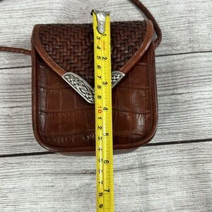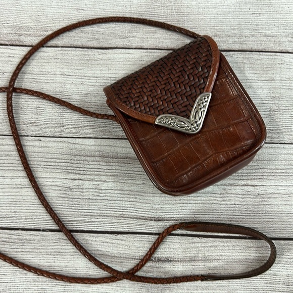 Brighton Leather Small Crossbody Purse with beautiful woven leather on flap and beautiful Brighton jewelry adornment on flap.