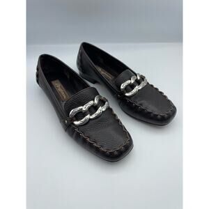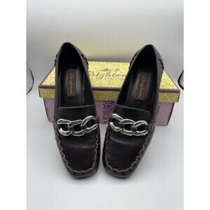 Brighton Chocolate Brown Klee Leather Chain Loafers Size 6
