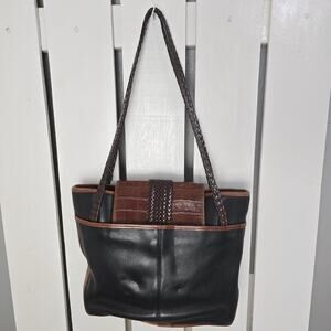Brighton 90s Medium Brown Black Shoulder Tote Bag Purse 852249 Minimalist Mature