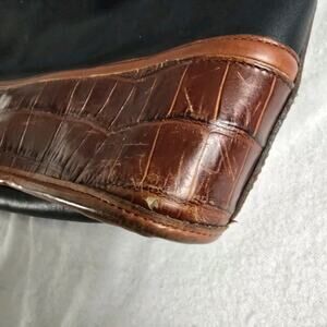 Good Condition, 90s Brighton Medium Size Shoulder Tote Bag Purse, Black Leather and Brown Embossed Animal Pattern