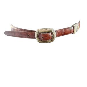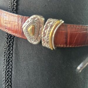 Brighton Alligator Leather Embossed Metal Silver Gold Casual Belt. Good condition