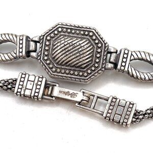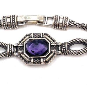 7.5 inches long, antique silver planted with gold accents. Amethyst faceted crystal. In excellent used condition.