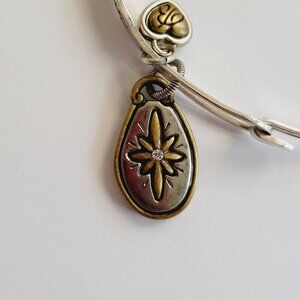 Brighton Art & Soul Joy To The World Bangle Bracelet Silver Plated Gold Trim 8"
