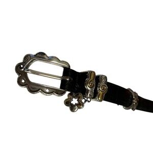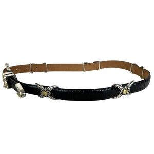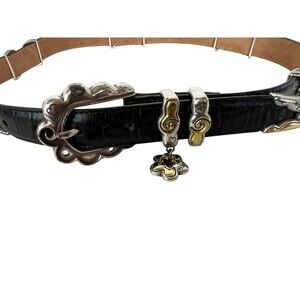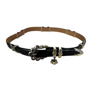 Brighton B10273 Vintage Black Leather Two-Tone Station Belt w Charm Size M / 30
