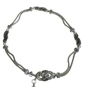 Brighton Bali Hai Silver Braided Swirl Hook Heart Charm Chain Belt size Small
