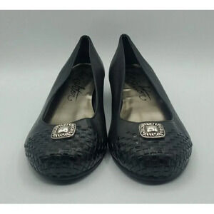 Brighton 'Barb' Black Leather Ballet Flats w/Silver Accent / Charm Size 8M