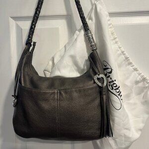 Brighton Barbados Hobo Bag in Pewter OS zip top dust bag pockets