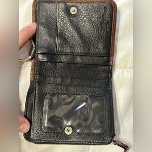 Brighton Basket weave Leather ID Key Holder Credit Cards Zipper Coin Wallet