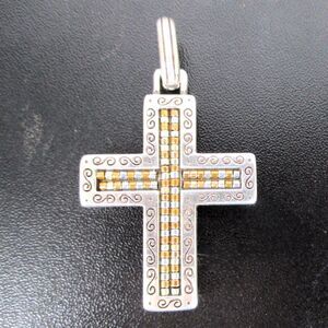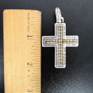 Brighton Bedazzled Orange Bead Silver & Gold Tone Reversible Cross Pendant in Good condition