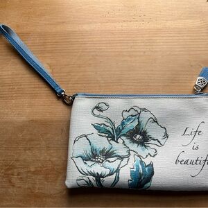 Brighton Bella Life is Beautiful Wristlet White Blue Floral Phone Bag Purse