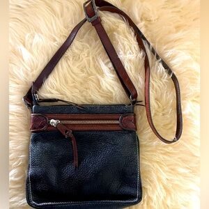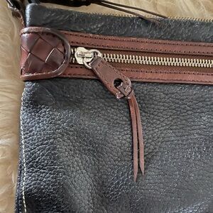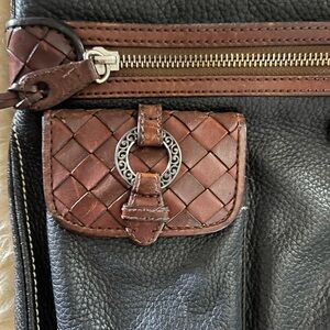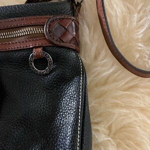 Brighton Black/ Brown Leather Silver Crossbody Adjustable Strap Bag